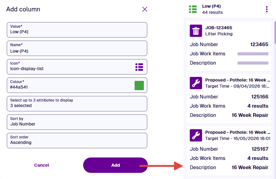 Select Add to finish. The board will automatically refresh to display the new column.