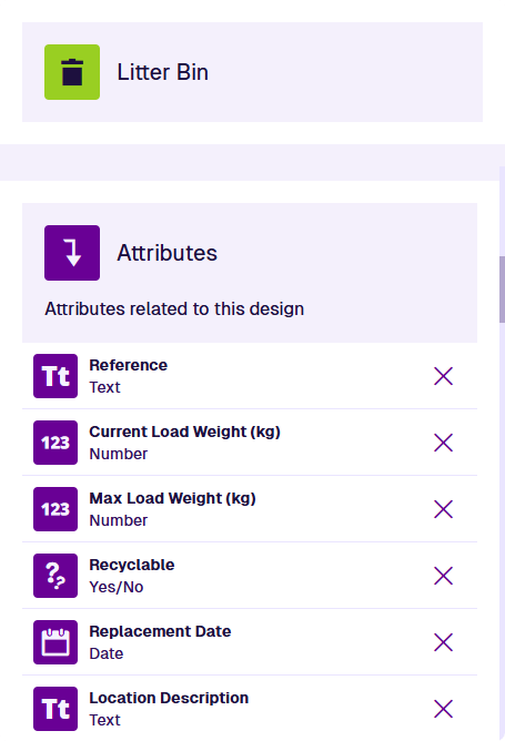 In CausewayOne Asset Management, an attribute is a data field that represents a single characteristic of the concept described by a design/interface.