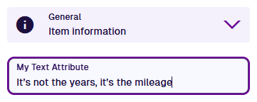 When creating or editing an item, select the attribute to start typing in it. Enter or paste in text that meets the configured restrictions.