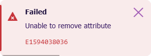 If the attribute is populated on any existing items, this will fail with a DodiAttributeInUse error (E1594038036). Select the error notification for more details. To continue, perform a bulk action that either edits those items to clear the attribute on them, or deletes the items entirely if they're no longer needed.