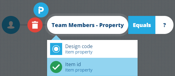 After a user selects a value in the Teams control, I want the Team Members control to only list members of the selected team. So I'll create an expression that: