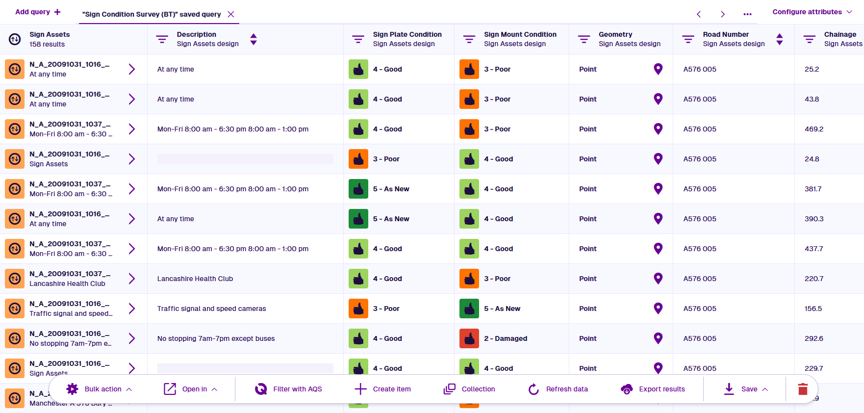 Perform powerful bulk actions on multiple items at once, open items in other Asset Apps (such as Maps) and export item data for use in other software.
