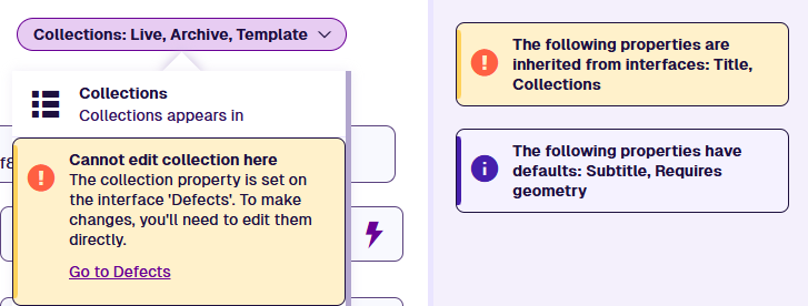 If the design/interface inherits its Collection property from an implemented interface, select the displayed Go to... link to edit the property on that interface instead.