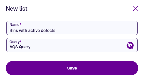 Query * - use the AQS Builder to build a query that fetches items meeting specific conditions.