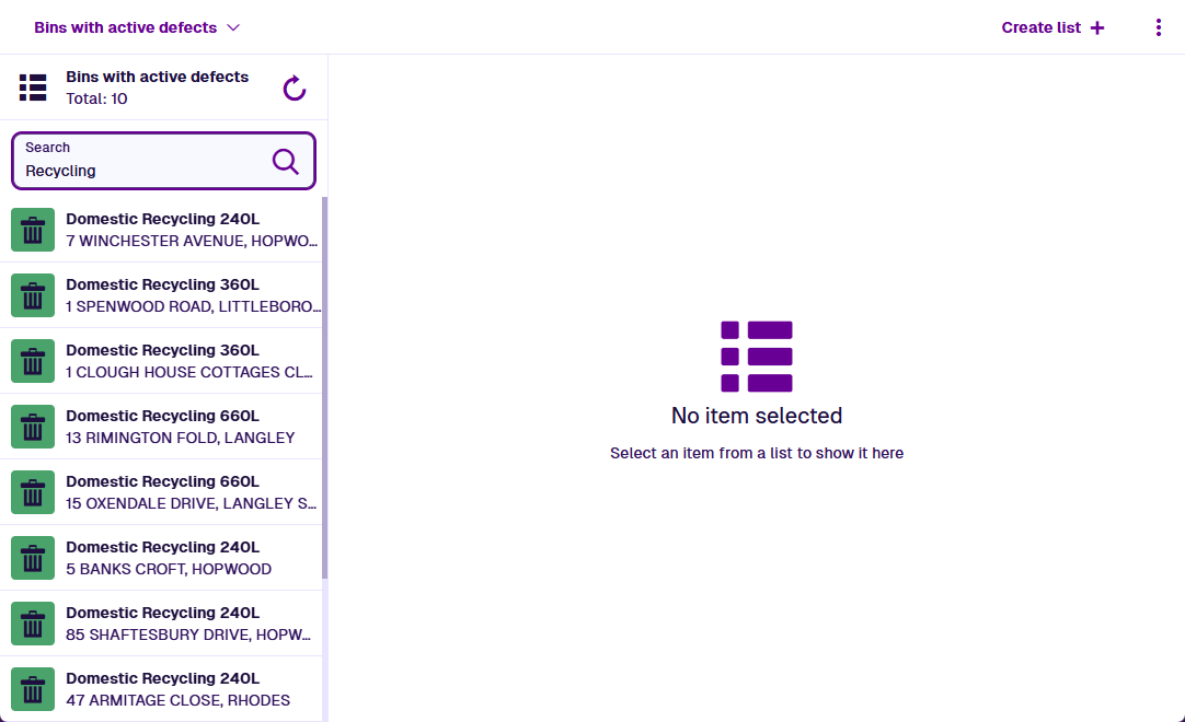 Items in the current list are displayed in the left pane. The light header displays the total number of items found when the list was loaded. To manually refresh the list's data at any time, select Refresh.