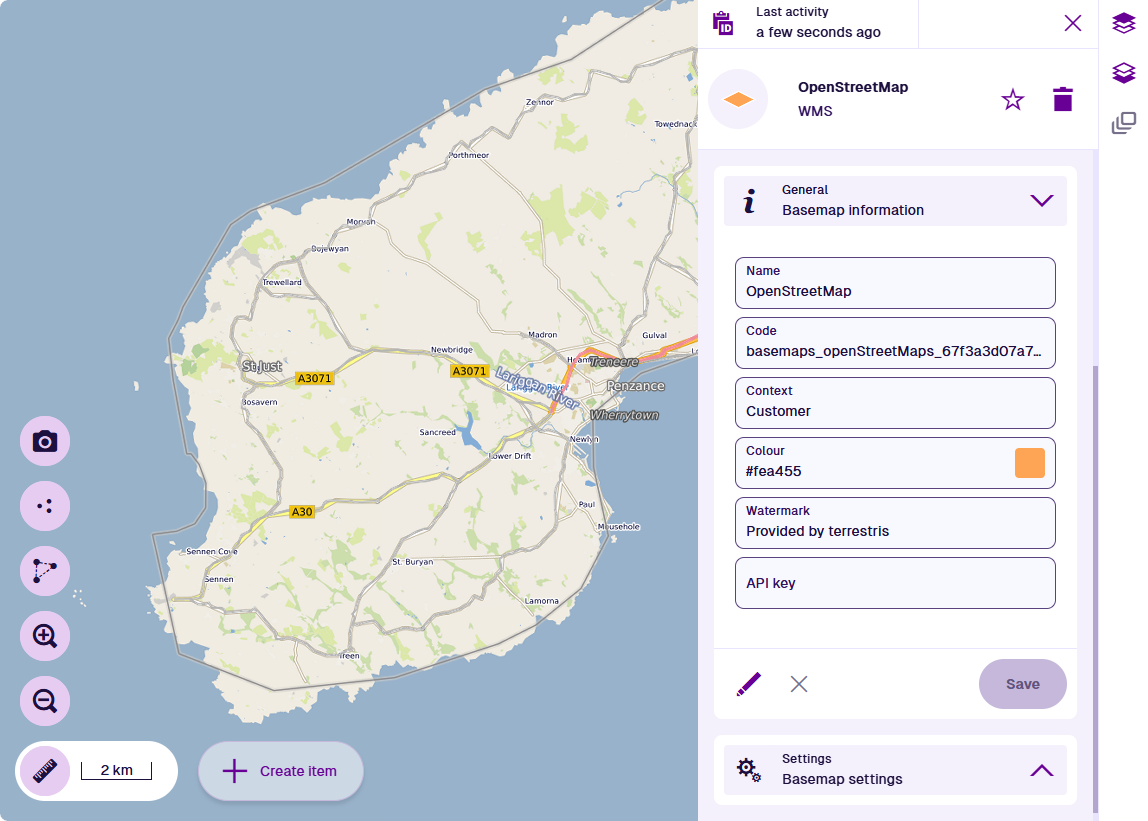 Name * - enter a distinct name that clearly identifies the basemap.