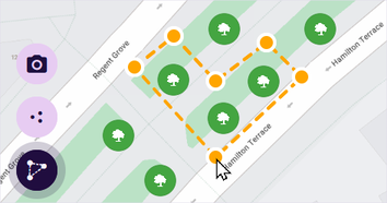 | Draw selection area | Select multiple items on the map. Select the tool and then select multiple points on the map to draw a polygon around items. Select the last point twice to complete the selection.![]() | |