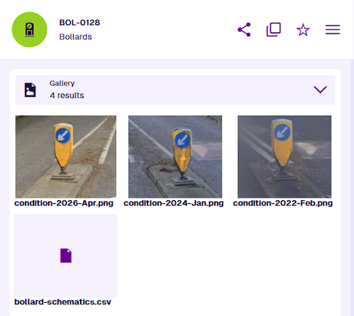 Some items have an Attachments Link attribute that can store references to uploaded files. When viewing an item, you can easily upload and attach new files from your device. Image attachments can be previewed directly and are a great way to record an asset's condition or the results of a completed task!
