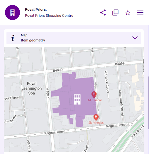 Every item has a Geometry attribute that can store coordinate data. This represents the item's location and shape. The item's design defines which types of geometry can be stored (e.g. point, line, polygon) and whether it's optional or required.