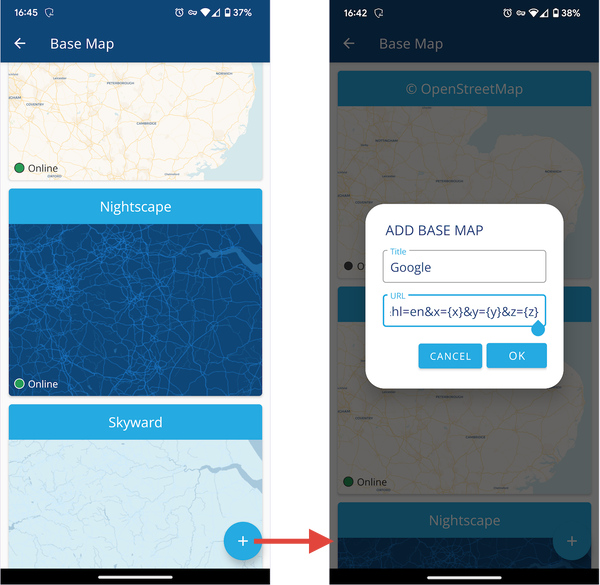 To change the basemap at any time, open the Main menu and choose Base Map. The list includes: