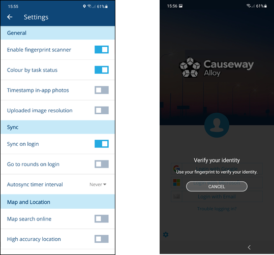 Whenever you launch Alloy Mobile, a fingerprint prompt will now appear. Use it to sign in without entering your account details again.
