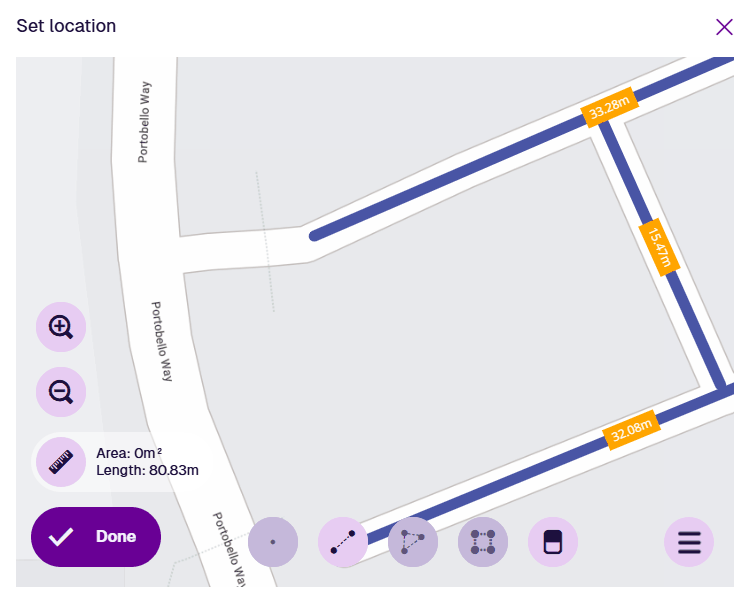 Select the Line tool and then select a starting point on the map. Continue selecting points along your desired line. To finish drawing, double-select the final point. The tool will remain active, enabling you to select it again and add more lines as needed.